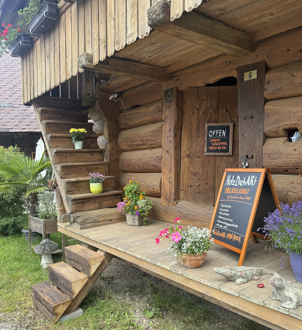 Im inneren befindet sich meine Ausstellung/Verkaufsladen hergestellter Drechselarbeiten.